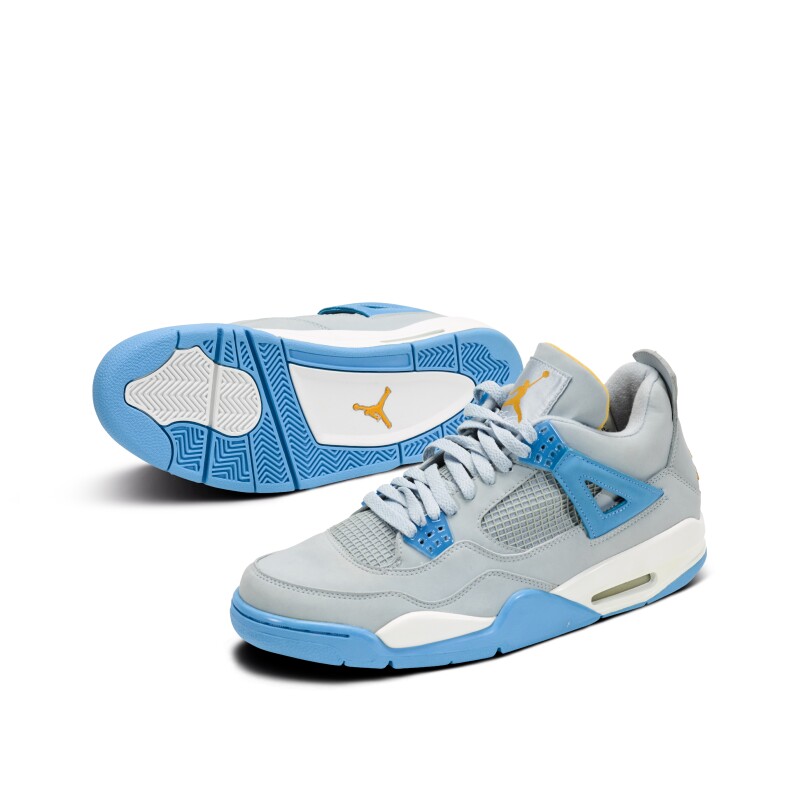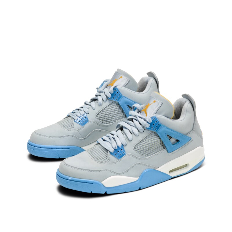 In 2006, the Jordan brand dropped a new Air Jordan 4 Retro LS, specified for lifestyle, in a brand new colorway. Sometimes referred to as the Air Jordan 4 Denver Nuggets due to the colorway which matches that of the basketball team’s jerseys, this Air Jordan 4 LS “Blue Mist” features an entirely grey nubuck upper, with Mist Blue lace locks, wings and outsole. The Jumpman on the tongue and tongue lining of the pairs are in gold, making the accents pop.
