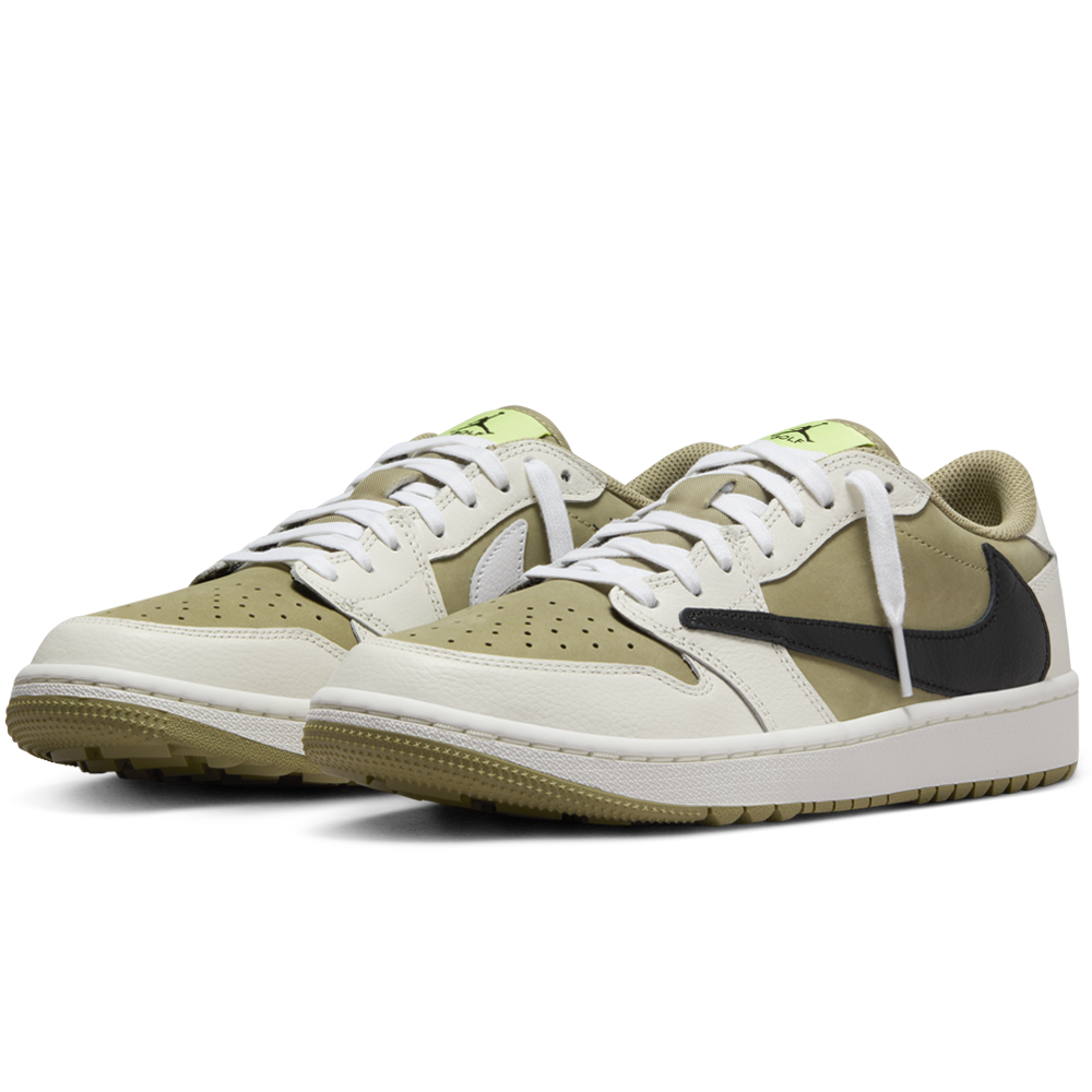 Indulge in the golf course’s lush greens with the Jordan 1 Retro Low Golf Travis Scott Neutral Olive, a stellar collaboration between the iconic Jordan brand and the renowned rapper, Travis Scott. This is the first-ever golf shoe collaboration between Jordan and Travis Scott, making it a rare treasure in the sneaker community.