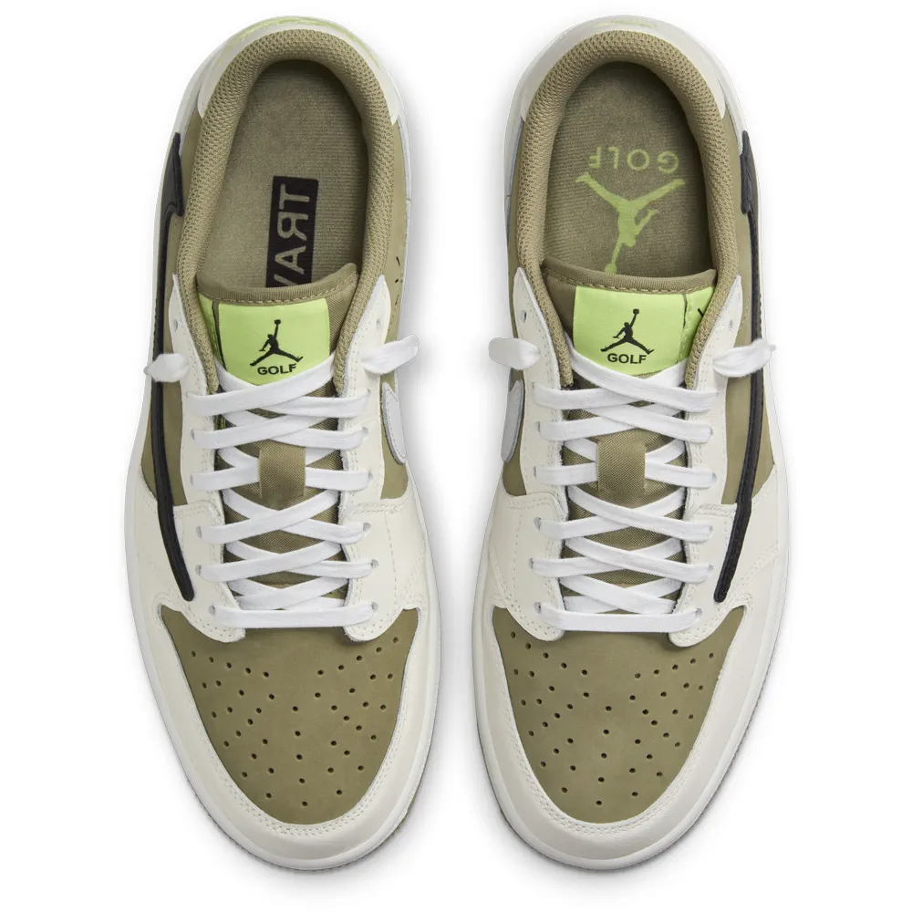 Dropped on October 13, 2023, at a retail price of $170, the Jordan 1 Retro Low Golf Travis Scott Neutral Olive is not just a pair of sneakers; it’s a statement of style, comfort, and unrivaled collaboration between sportswear and music royalty.
