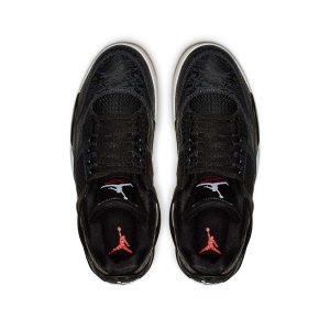The Air Jordan 4 Black Laser is a special edition of the iconic Michael Jordan signature shoe featuring a classic laser graphic by Jordan Brand. Originally appearing on the Air Jordan 20 and an older release of the Air Jordan 4, the Laser pattern features an intricate mix of graphics inspired by Jordans career and the history of Jordan Brand. It appears on this 2019 release as a glossy tonal print on the black leather upper. The all-black upper is complemented with a white midsole and gum rubber outsole. Hits of red appear on the Flight text on the tongue as well as the Jumpman on the outsole and insole. The Air Jordan 4 Black Laser released on January 19, 2019.