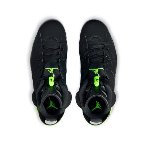 The Air Jordan 6 Retro ‘Electric Green’ showcases a simplistic two-tone color scheme that calls to mind an Oregon PE colorway that surfaced online in 2018. The iconic silhouette sports a black nubuck upper with contrasting hits of neon green on the tongue and spoiler-like pull tab. Tonal Jumpman branding is embroidered on the sneaker’s back heel. Lightweight cushioning is provided by a polyurethane midsole, enlivened with additional green pops and fitted with a visible Air sole unit. Underfoot, the semi-translucent rubber outsole is treated to a glow-in-the-dark finish.